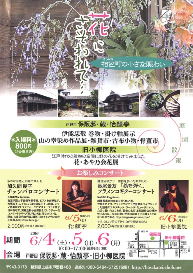 [PR] ×[PR]上記の広告は3ヶ月以上新規記事投稿のないブログに表示されています。新しい記事を書く事で広告が消えます。 チェンバロ到着しました 明日5日18時からのチェンバロコンサートのチェンバロ到着しました。明日の演奏会が楽しみです。 PR ピザの屋台がやって来る♪ なんと3日間ピザ屋台が会場内に出現します!しかも上越屈指のイタリアンレストラン〝ペントラッチャ〟さんのピザです(*^^*)新緑のお庭で美味しいピザをご堪能下さい。 6月6日はフラメンコギターのコンサート 3日目の6日(月)は謙信公ゆかりのフラメンコギターリスト 長尾景友さんの演奏を旧小柳医院でお楽しみ頂けます!料金 ¥2000(2会場入場含む)開演18時〜チケットのお問い合わせは保阪まで。TEL 08054845725 6月5日はチェンバロコンサート 今回のイベントはコンサートが2本!6月5日は歴史を感じさせる怡顔邸の京間で、バロック音楽の代表的なチェンバロの演奏でお楽しみ頂けます。料金 ¥2000(2会場入場料含む)夜18時より開演チケットのお問い合わせは保阪までTEL 08054845725 2016年 初夏の保阪邸イベントのご案内 チラシが出来上がりました。沢山のご来場をお待ちしております。